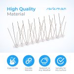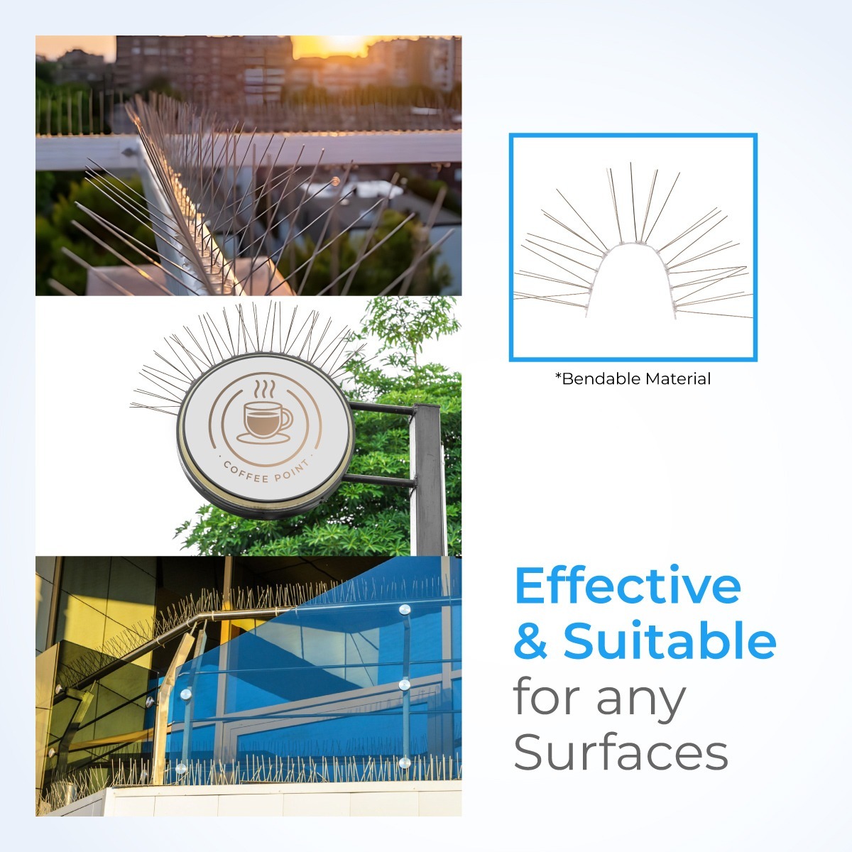 Effective Pigeon Deterrent:Our stainless steel bird spikes are expertly designed to create an inhospitable environment for pigeons, preventing them from roosting and nesting. Ideal for fence tops, they also act as anti cat spikes, offering dual protection from both birds and cats. Install these spikes to safeguard your property from the damages caused by bird droppings and debris.