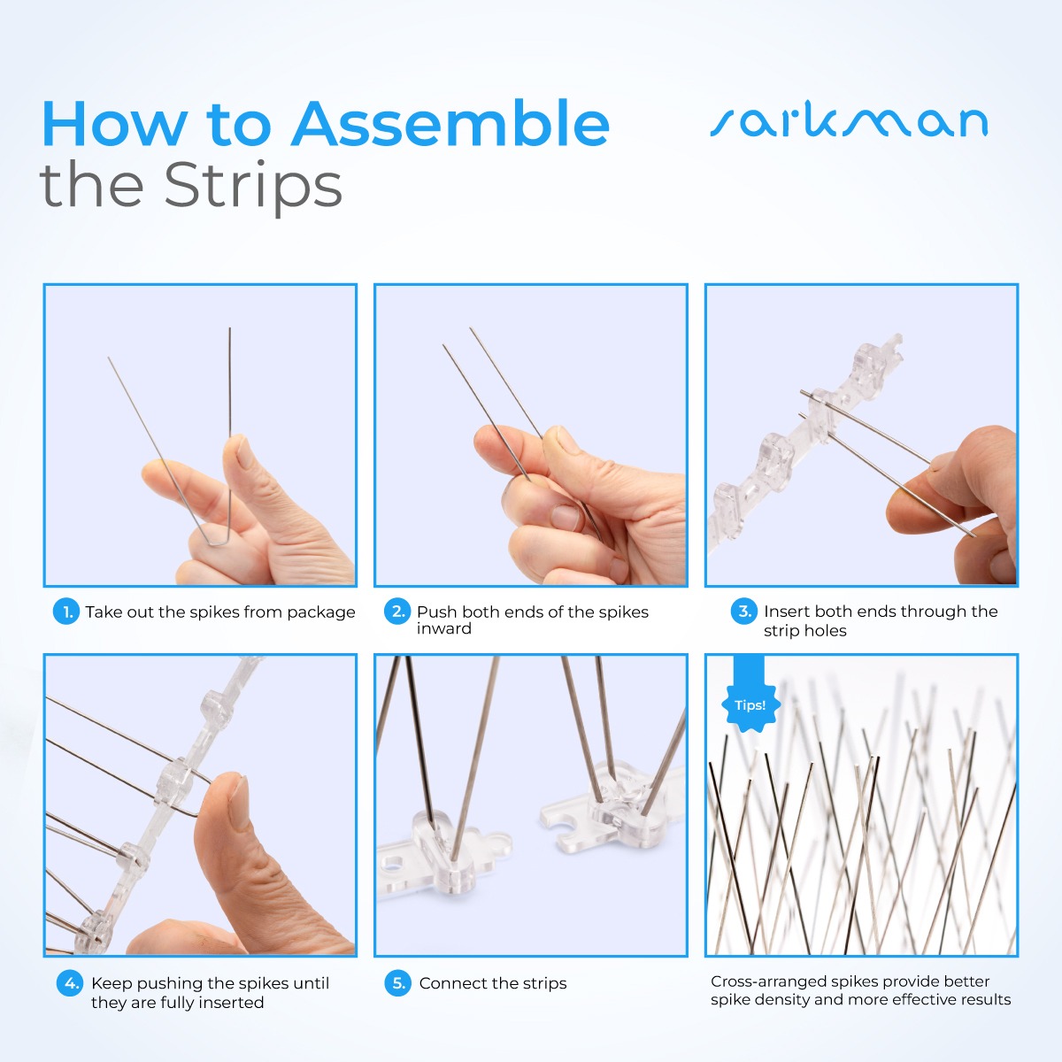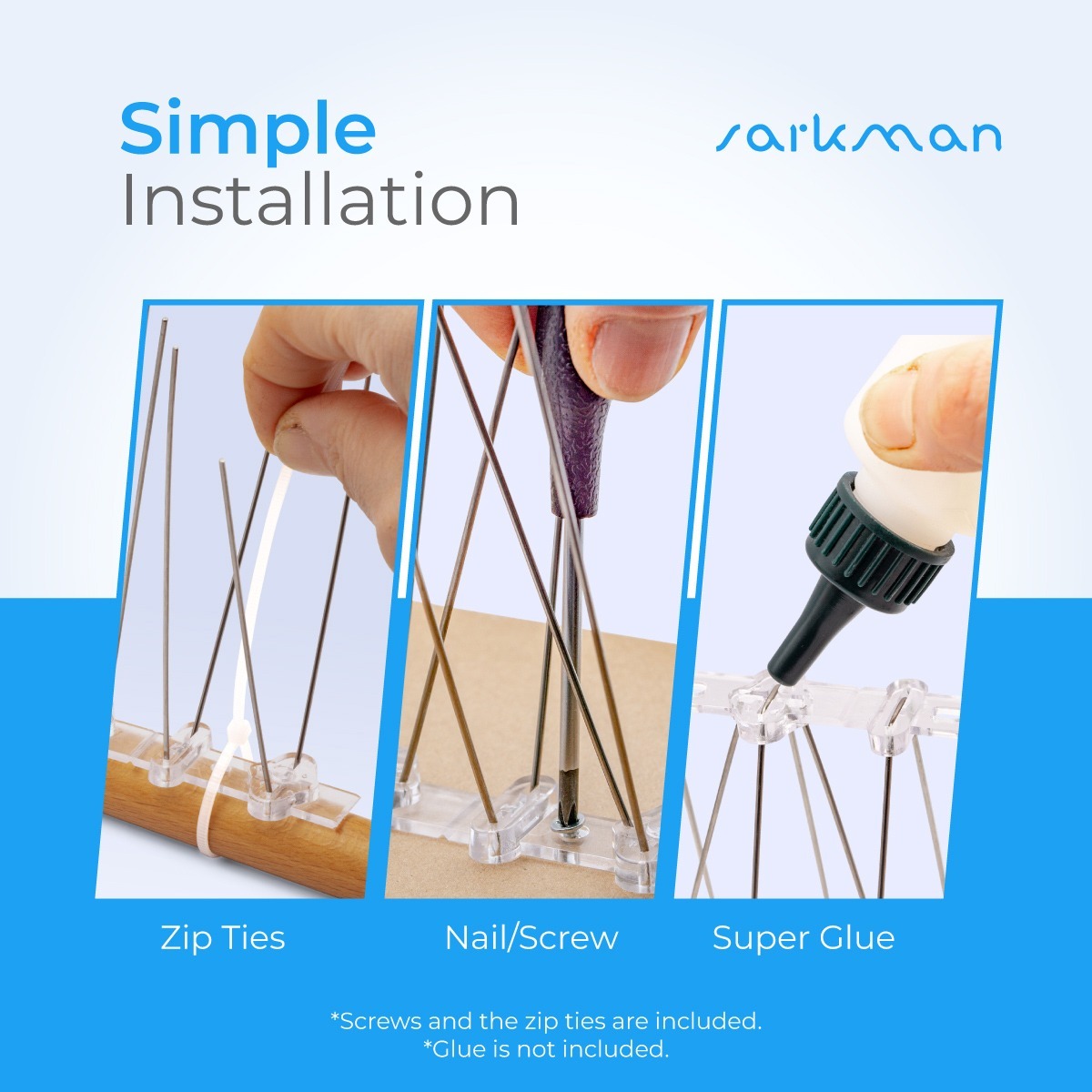 Bird spikes are an effective, humane solution for keeping birds off your property. To install, start by cleaning the surface where the spikes will be placed. Use adhesive or screws to securely attach the spikes to areas like ledges, rooftops, or fences. Make sure the spikes cover the entire width of the surface to prevent birds from landing. Once installed, the spikes will deter birds from perching, keeping your space clean and bird-free without harm.