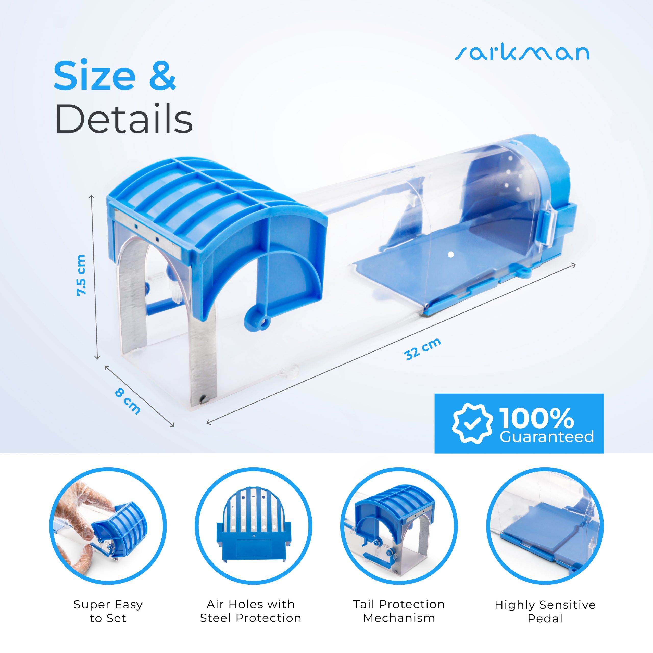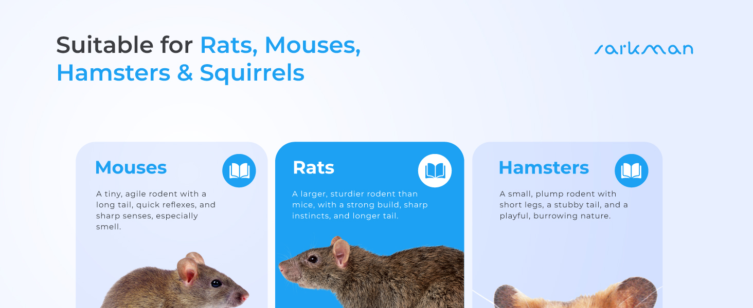 🐭 HIGH-QUALITY NO KILL MAKE 🐭 sarkman expert eco humane repeller station is durable, best quality with easy use. 2 x Humane Mouse and rat no kill trap in highest quality in market. Specially designed ventilation holes will provide air for the animal that is trapped inside. The package comes with all the accessories you will need to catch the rodent. No need for sticky glue pads, ultrasonic electric/electronic, deterrent devices or poisons with stations.
