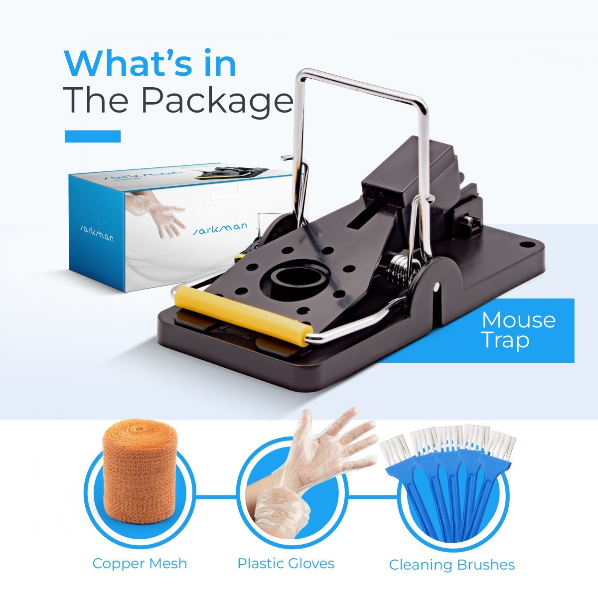 [ Complete Pest Solution ] Our mouse trap set is a professional all-in-one solution designed for efficient and safe rodent control. It features 10 durable snap traps made with stainless steel and black plastic. Its high-sensitivity mechanism ensures an instant kill without poisons or electronics, making it a safe and effective option for both indoor and outdoor use, even for small rodents like squirrels.