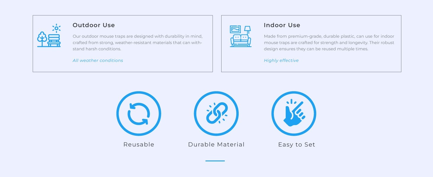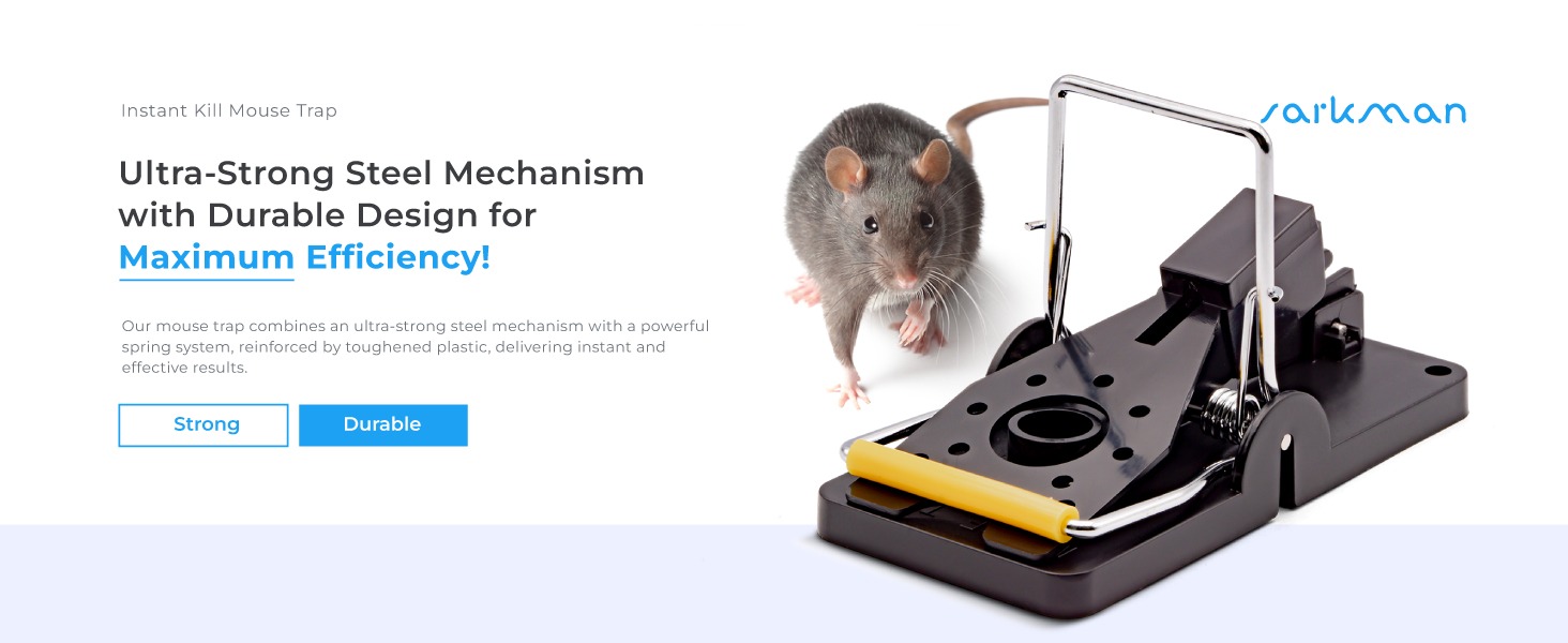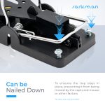 [Durable & Safe Build ] This heavy duty rat trap is constructed with premium stainless steel and durable plastic for long-lasting use. It’s safe for both indoor and outdoor applications, with no toxic chemicals or ultrasonic devices. Simply bait it with cheese, nuts, or other attractants to achieve optimal results against mice and small rodents.